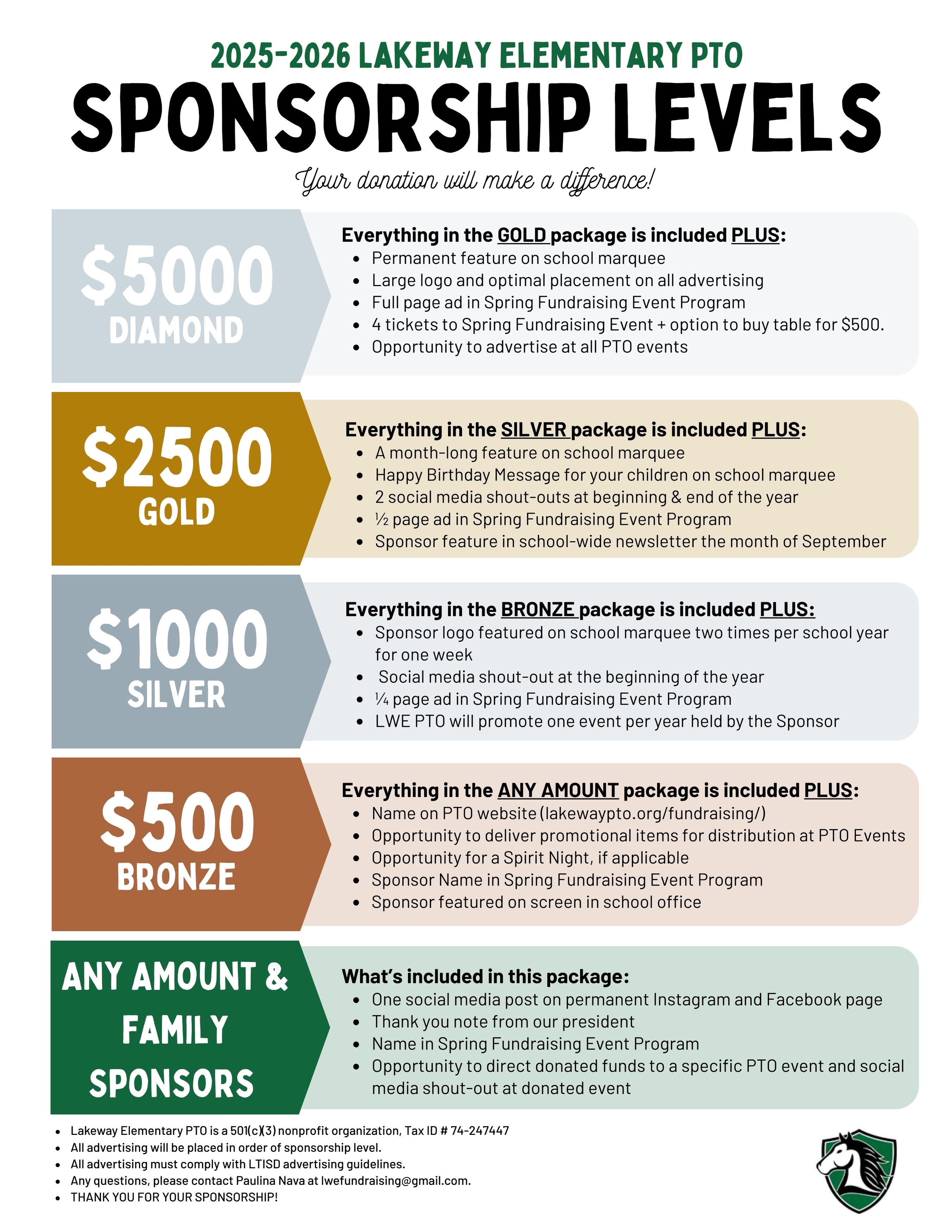 Our Sponsorships are set up with the levels with each level containing specific benefits. Click to learn more about sponsor opportunities.